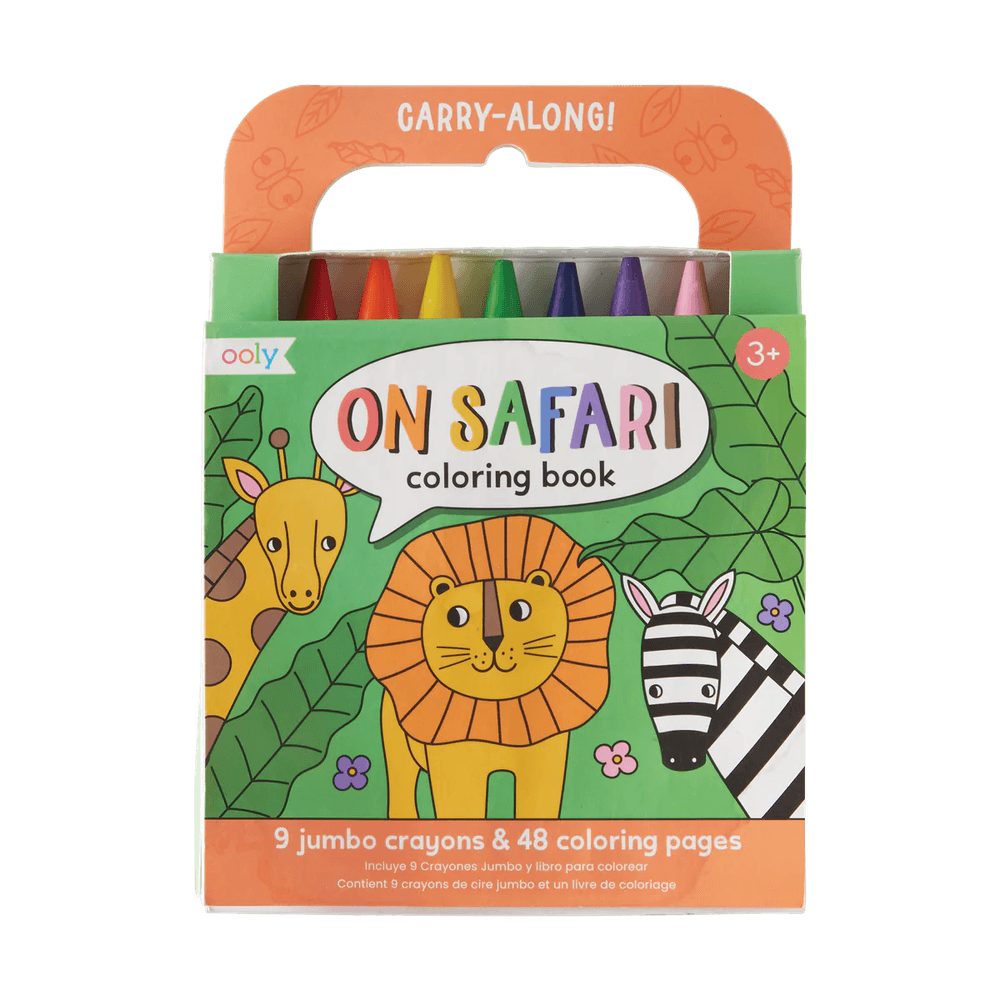 Incluye 48 páginas con animales de safari (leones, cebras, leopardos y más) y 9 crayolas jumbo, todo dentro de un práctico estuche con agarradera. Perfecto para viajes, salidas o momentos en los que necesitas entretenimiento creativo al instante.