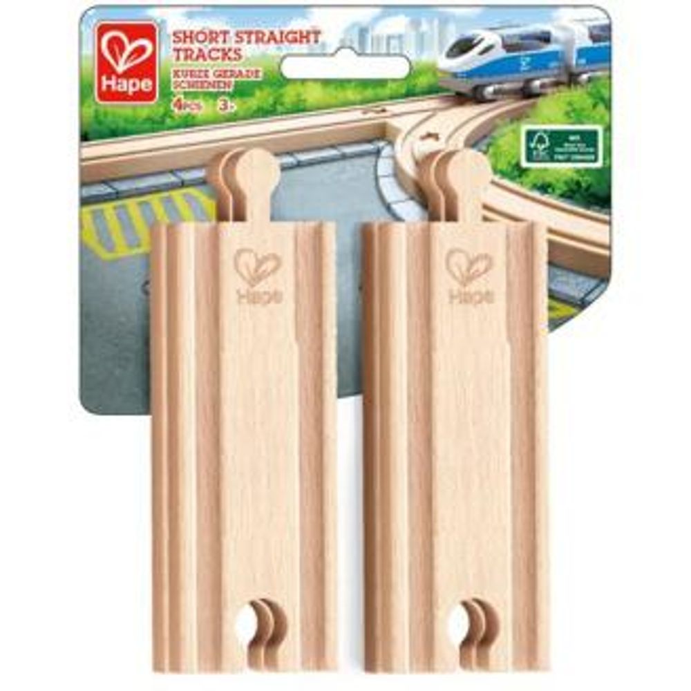 Amplía el recorrido de tus trenes de madera con las Vías Rectas Cortas Hape . Este set incluye 4 piezas de madera natural compatibles con la mayoría de sistemas de trenes. Perfectas para ajustar longitudes y conectar curvas en tus circuitos. Fabricadas con materiales sostenibles y seguras para niños desde los 3 años.