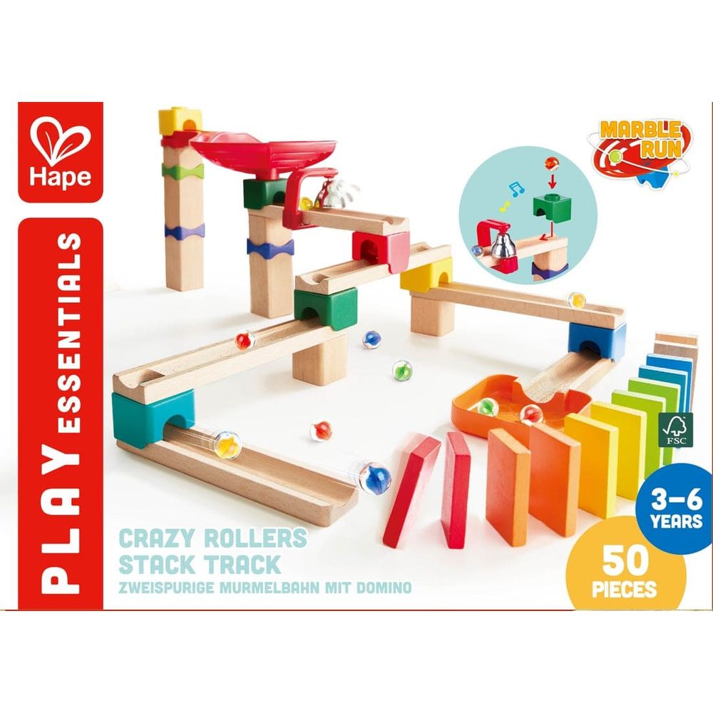 Deja que la diversión empiece con el Crazy Rollers Stack Track E1102A de Hape: un set de bloques y pistas de madera para que los niños construyan su pista de mármoles con giros, embudos en espiral, una campana final y una fila de domino para derribar. Ideal para estimular la coordinación ojo-mano, el pensamiento lógico y la creatividad desde los 3 años en adelante. Perfecto para jugar solo o con amigos, y con materiales seguros y duraderos — un gran regalo de exploración para los más pequeños.